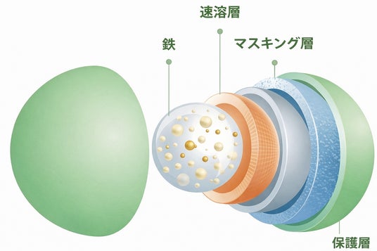 鉄をリン脂質の膜で包み込む「リポソーム技術」を採用し、ハードカプセルにすることで、