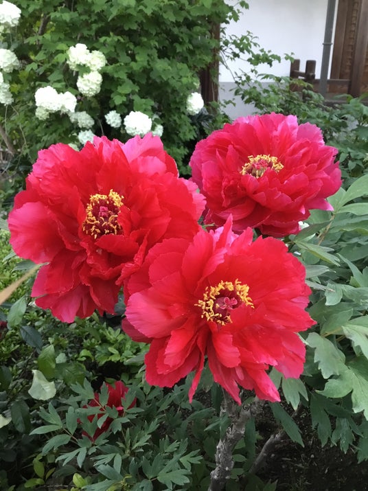 戦前から「牡丹寺」として知られていましたが、第二次世界大戦中に軍の施設として使われたために、牡丹の庭園が荒らされてしまいました。そのため、牡丹の株を檀家の畑に移しましたが、混乱の中で貴重な品種が失われました。