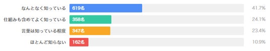 一方、「言葉は知っている程度」は23.4%(347名)、「ほとんど知らない」は10.9%(162名)でした。
