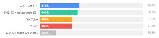 また、投資判断の情報収集先としては「YouTube」27.0%(401名)がトップで、「ニュースサイト」18.1%(269名)、「SNS」17.0%(253名)が続きました。