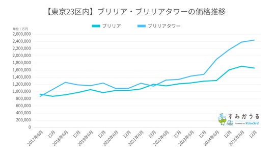調査期間:2017年3月~2026年3月(過去データは2017年~現在を対象)データ出典:東京建物公式サイト、ブリリア公式サイト、マンションナビ