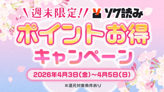 ory)が運営する「ソク読み」は、2026年4月3日(金)~2026年4月5日(日)の期間にてポイントチャージ500円以上のプランにて、ボーナスポイントが2倍になる「週末限定!ソク読みポイントお得キャンペーン!」を実施いたします。
