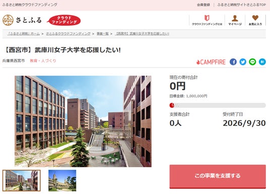 兵庫県西宮市とふるさと納税ポータルサイト「さとふる」を運営する株式会社さとふる(本社:東京都中央区、代表取締役社長 兼 CEO:藤井 宏明)は、「さとふるクラウドファンディング」にて、兵庫県西宮市における4事業の寄付受け付けを2026年4月3日より開始します。なお、甲南大学、神戸女学院大学、武庫川女子大学の「さとふるクラウドファンディング」での寄付募集は今回で2回目となります。