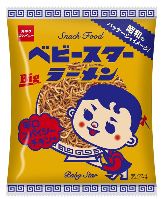 株式会社おやつカンパニー(本社所在地:三重県津市 代表取締役社長:横山正志)は、昭和100周年となる2026年の「昭和の日」に向けて、発売当時をイメージした昭和レトロなパッケージで楽しむ『ベビースターラーメン(辛口スパイシーチキン味)』を、2026年4月6日(月)より全国にて期間限定発売します。