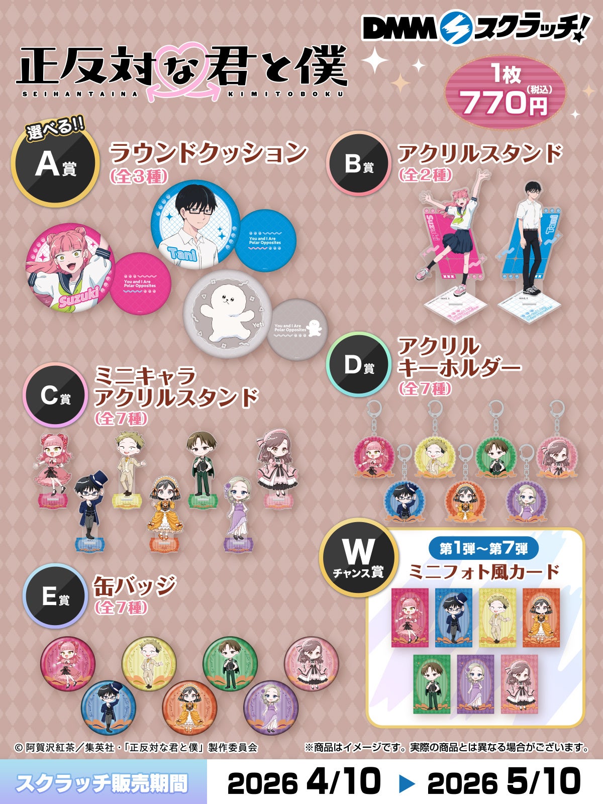 キャラクターグッズの商品企画・製作・販売を行う株式会社メディアワークスは、大人気TVアニメ『正反対な君と僕』の「DMMスクラッチ」を2026年4月10日(金)より展開いたします!