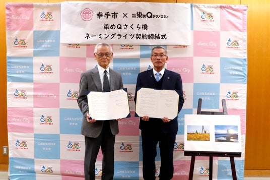 株式会社染めQテクノロジィ(本社:茨城県猿島郡五霞町、代表取締役社長:菱木貞夫)は2026年3月3日(火)、埼玉県・幸手市と桜の名所権現堂桜堤にほど近い外野橋(そとのはし)についてネーミングライツ契約を締結しましたことをお知らせいたします。外野橋は、同市の大字権現堂(おおあざごんげんどう)地区にあり、桜の名所・権現堂桜堤に架かる橋梁で、名称は「染めQさくら橋」に決定いたしました。