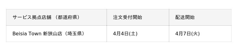 株式会社ベイシア(本社:群馬県前橋市、代表取締役社長:相木孝仁)は、楽天グループ株式会社(以下「楽天」)が提供するネットスーパーのプラットフォーム「楽天全国スーパー」内に出店する「ベイシアネットスーパー」において、3月25日に開業した新フォーマット1号店となる「Beisia Town 新狭山店」からの配送を2026年4月7日(火)より開始いたします。