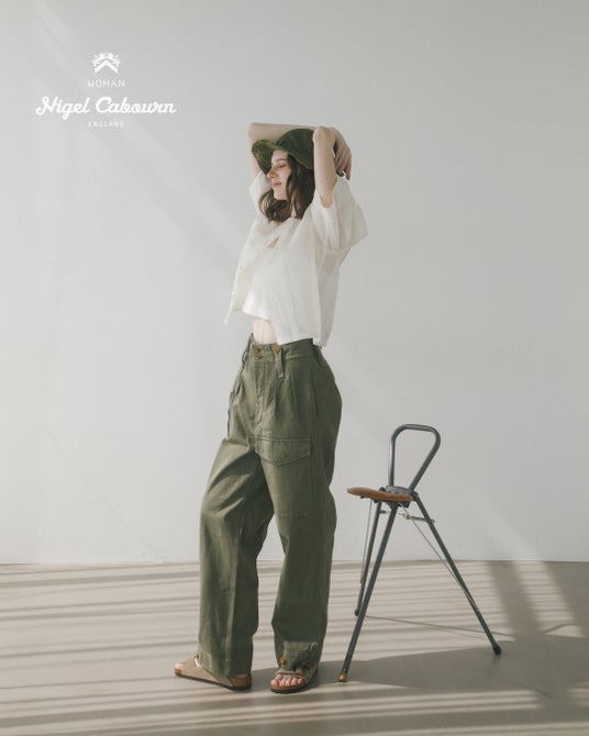ミリタリーの機能美をベースに、軽やかな素材感と余白あるシルエットで再構築したNigel Cabourn WOMAN SS26のルック。