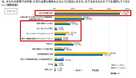2. 卒業・入学の費用捻出のため7割以上が「他の生活費を削る」と回答(グラフ2)