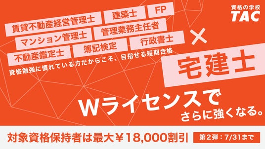 宅建試験対策講座を展開しているTAC株式会社(東京都千代田区)は、2026年(令和8年)の合格を目指す方に向けて、対象資格保有者限定の期間限定キャンペーン第2弾を2026年4月1日より開始します。
