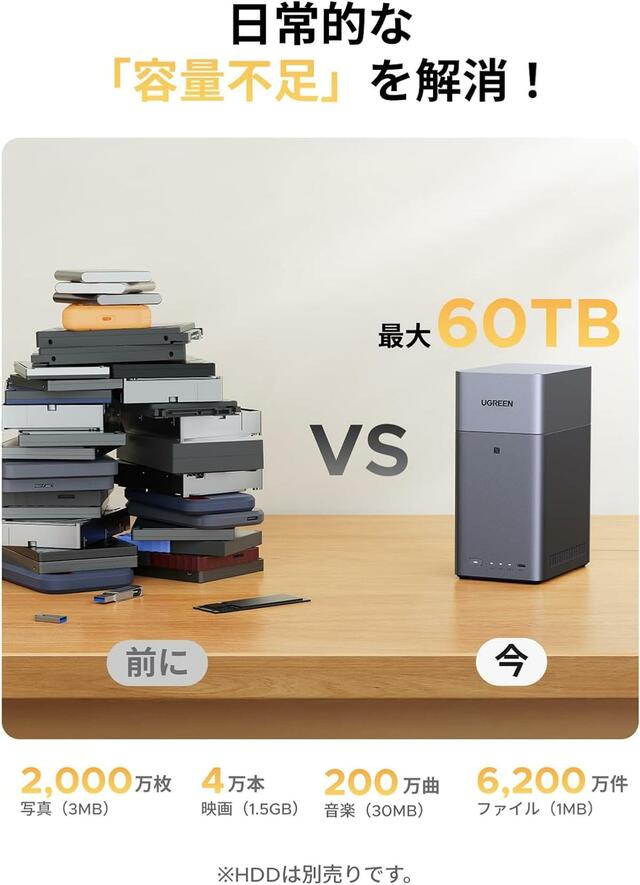 デバイスのストレージ不足を解消したい人におすすめなのが、UGREENのネットワーク接続型ハードディスク「Network Attached Storage(NAS)」。