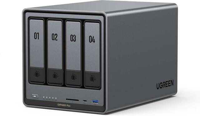 最後は、SSDとHDDを最大4台搭載できる4ベイモデルの「NASync DXP4800 Plus」。ストレージ容量は最大136TB。10GbEと2.5GbEの高速デュアルLANポートで4K動画の転送もスピーディーに完了します。