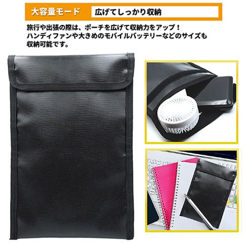 近年、リチウムイオン電池を搭載したモバイルバッテリーやハンディファンの普及に伴い、予期せぬ発火事故が急増。こうした外出時のリスクを抑えるだけでなく、ご自宅での貴重品保護も叶えるポーチ。用途に合わせて形を変えられる利便性と確かな守りを両立した、これからの季節の必須アイテムです。