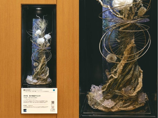 一度変化すると二度と元の状態には戻らない。時間の経過とともに失われながらも、新たな姿へと更新されていく生命の儚さと刹那的な美しさを、花と構造によって立体的に表現した作品です。