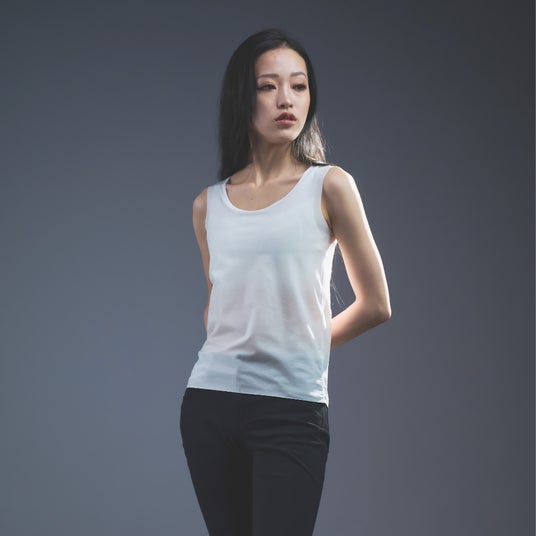 「Nstyle オープンネックハーフトップ」は、襟ぐりを大きく開けたV字カッティングのオープンネック型。胸元があいた洋服はもちろん、ビジネスシーン、和装も襟元が着崩れすることなく美しく着こなすことが可能です。