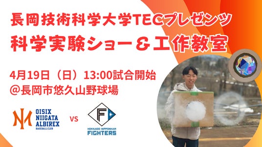 オイシックス新潟アルビレックス・ベースボール・クラブ(以下、オイシックス)は、4月19日(日)の北海道日本ハムファイターズ戦にて、長岡技術科学大学の学生サークル「Technical Education Circle(TEC)」による科学実験ショー&工作教室を開催することをお知らせいたします。