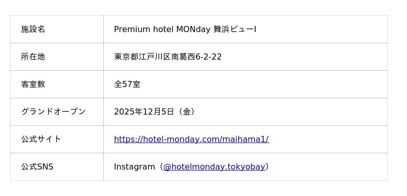 株式会社JHAT(本社:東京都、代表取締役:平林 朗)が運営する「Premium hotel MONday 舞浜ビューI」(東京都江戸川区)は、最上階に位置する屋上インフィニティプールの営業を2026年4月25日より開始いたします。