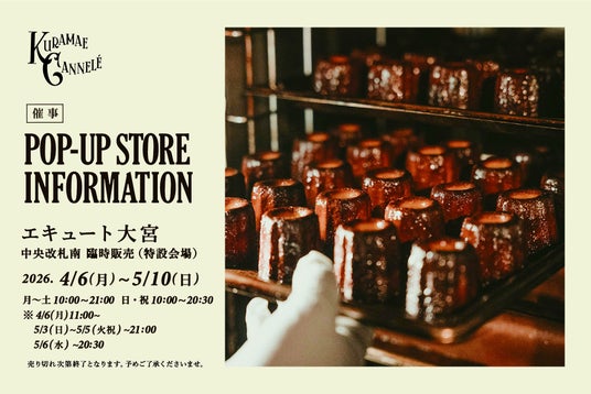 東京・蔵前にあるSNSで話題の焼き立てカヌレ専門店「KURAMAE CANNELE(クラマエカヌレ)」(運営:CLASSIC INC.、代表取締役 : 萱場俊克、本社 : 東京都渋谷区)は、2026年4月6日(月)~5月10日(日)の期間限定で、エキュート大宮にて出店いたします。