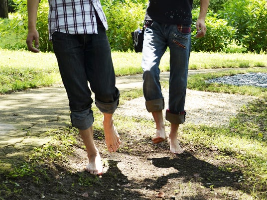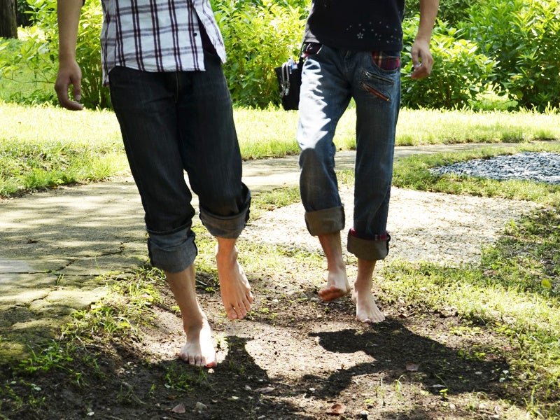 目隠しをして、肌で自然を感じる「裸足の道」