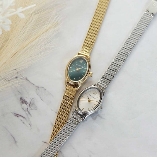 繊細なオーバルケースが美しい、エレガントな腕時計