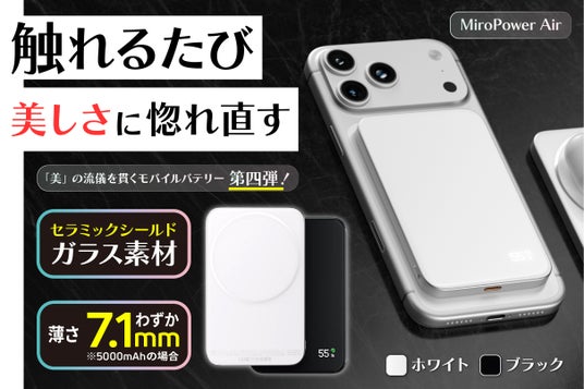 この度、「美」の流儀を貫くモバイルバッテリー第四弾、「MiroPower Air」のクラウドファンディングを2026年4月3日より開始しますことをお知らせします。