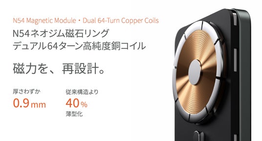 - 「N54高強度マグネット」と二層64ターンの純銅コイルにより、優れた装着感を確保
