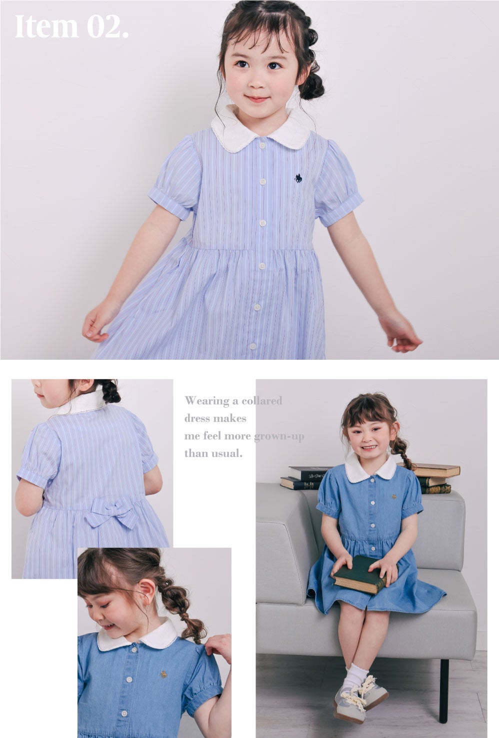レースの丸襟やバックリボン、パフスリーブなど、上品な女の子らしさを感じさせるワンピース。