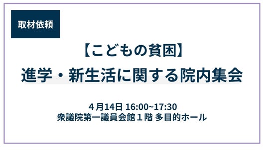 また、各団体の調査などでも入学・新生活時の費用負担の深刻さが明らかになり、1年で最も関心の高い新年度を迎える時期に、与野党の多くの国会議員に課題認識を深めていただき、さらなる施策拡充につなげるため、院内集会を開催いたします。