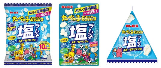 猛暑が続く近年の夏において、外出先やスポーツシーンで「手軽に、かつ楽しく塩分補給をしたい」というニーズが急速に高まっています。そこで、幅広い世代に親しまれている「たべっ子どうぶつ」から、健康志向と季節性に応える高機能ラムネを開発いたしました。コンビニエンスストアでの先行発売を皮切りに、部活動での配布やご家庭でのストックなど、多様なライフスタイルに合わせた3つのパッケージ形態をご用意。夏の厳しい暑さの中でも、どうぶつたちと一緒に笑顔でリフレッシュできる「夏の新定番アイテム」として、新しい価値を全国へお届けしてまいります。
