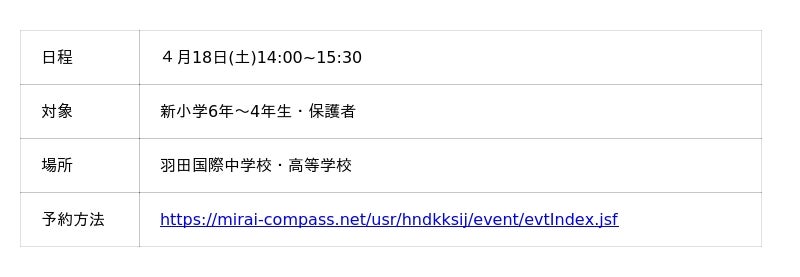 そして羽田国際中学校は、第2期生募集の第一弾として、キックオフミーティング(プレ説明会)を4/18(土)に開催します!当日は教育理念・教育コンセプト、学校生活などの概要はもちろん、第1期生を迎えた、新校羽田国際中学校の「今」を最速でお伝えします!皆様、せひご参加ください!