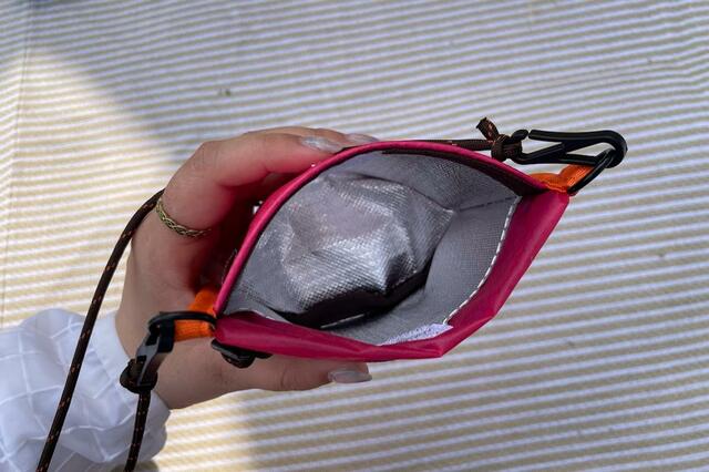しかも内側には保冷素材が貼られているので、冷たさをキープしながら手ぶらで歩けるんです。