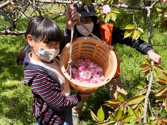 しかし、コロナ禍により生産量が激減し、高齢化に伴う農家の減少も影響し、流通が厳しい状況となっています。このため、農家を支援しつつ、「桜の花摘み体験と塩漬けづくり体験」を企画しました。農家と共に桜の仕事を体験しませんか?