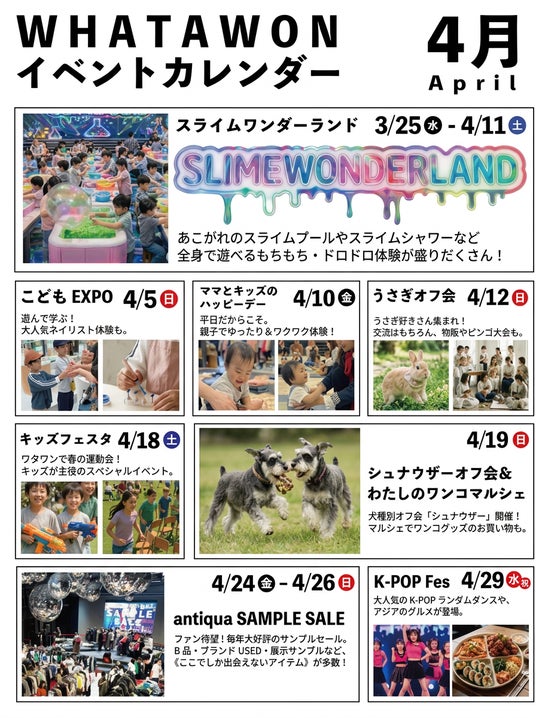 ワタワンでは、2026年4月も親子で楽しめる体験イベントから、愛犬家にうれしいオフ会、ショッピング、音楽イベントまで、幅広い企画を開催します。