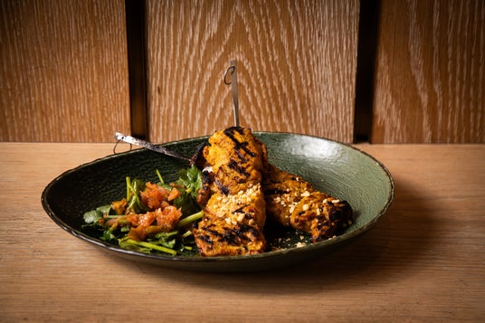 ヨーグルトとスパイスに漬け込んだインドの定番料理「チキンティッカ」を串スタイルで提供。