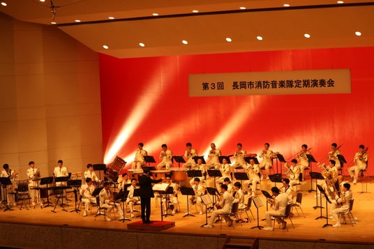 昭和42年に発足した長岡市消防音楽隊は、総勢32名の隊員で編成されており、それぞれが消防、救急、救助隊員として従事するかたわら、演奏活動を通じて市民と消防を結ぶ音のかけ橋となり、災害のない明るい街づくりに努めています。