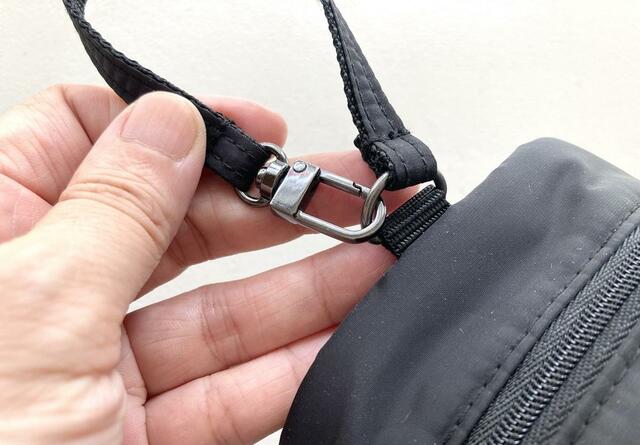 ストラップに、くるくると回るシンプルで使いやすい金具が付いています。