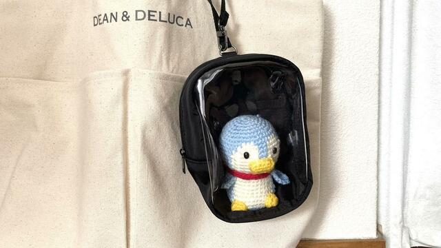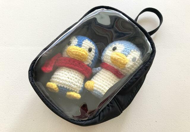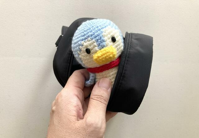 お気に入りのペンギンちゃん、頭が大きくてなかなかちょうどいいポーチが見つかりませんでした。