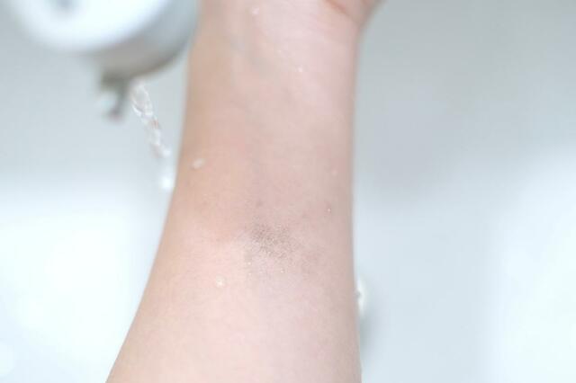 また、スウォッチを撮ろうと手に塗ってみて気がついたのですが、擦ってもあまり液が取れなかったんです。