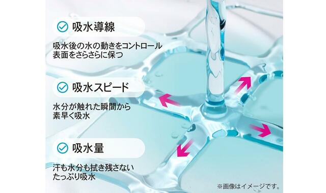 タオルが吸った汗などの水分を表面から逃がす「吸水導線」という独自のテクノロジーによって、さらっとした肌触りをキープ。筆者は汗っかきなため、これが本当なら心強い……。