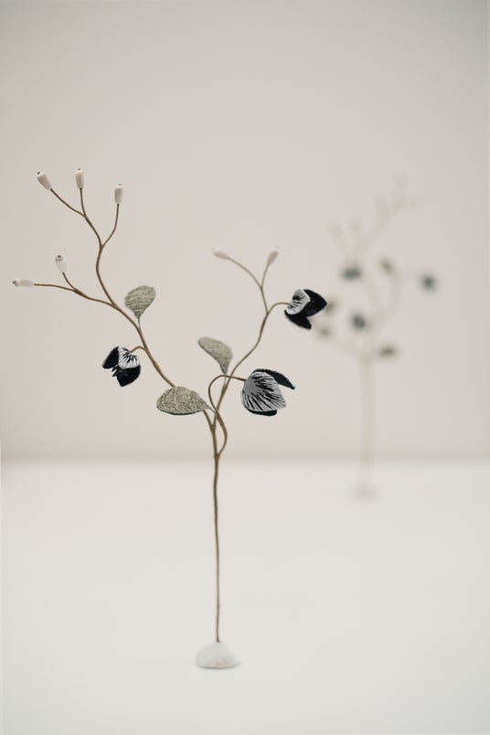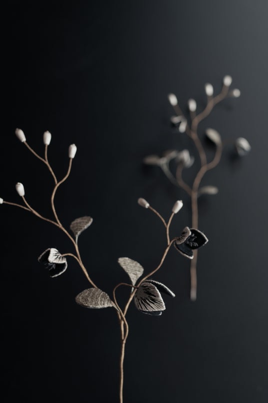 一本の糸、一枚の布から生まれる美やかな空想の植物たち。アフロプリュスはそんな植物をモチーフとした作品をひとつひとつ手仕事で仕上げています。京都の伝統的な絹糸を主な素材に質感や色彩を活かした作品は繊細ながらも存在感があります。京都を拠点に甘すぎず上品なアクセサリー・オブジェ、ウェディングアイテムを制作し、個展や展示販売会にて発表しています。アトリエシムラが植物で染めた糸や裂を使って、二度にわたってコラボレーションを展開。