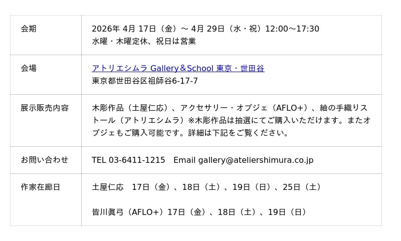 ギャラリーページ:https://www.atelier-shimura.jp/blogs/gallery/yuniwa-2026