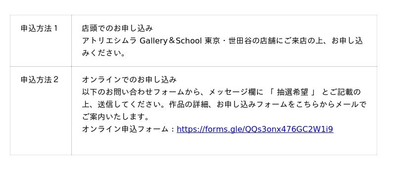 お問い合わせ:メールアドレス gallery@ateliershimura.co.jp