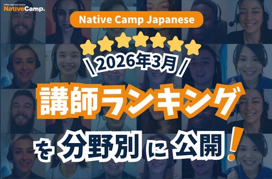 株式会社ネイティブキャンプ(本社:東京都渋谷区、代表取締役社長:谷川国洋)が提供するオンライン日本語会話サービス『Native Camp Japanese』では、このたび、このたび、2026年3月の講師ランキングを公開いたしました。