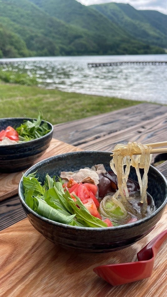 国産鶏の淡麗鶏汁と国産焼きあご出汁のWスープは絶品です。オリジナルの極太のもちもち生春雨は未体験の食感と美味しさです。