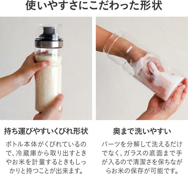 さらに、ガラスの底面まで手が入るから洗いやすさもバッチリ。大きな米びつだと頻繁に洗う機会はないし、洗いづらいから、これは大きなメリットかも!