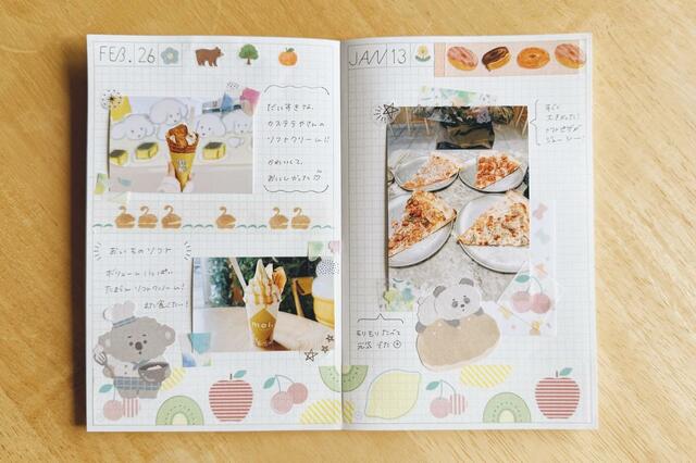 日記や思い出を書き込んだり、ご飯や旅の記録帳にしたり、本の記録にもぴったり。