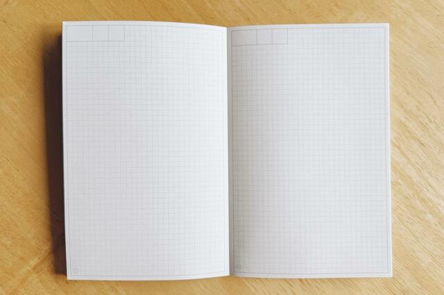 ノートは無線綴じで、パタンと水平に開いて書きやすいつくり。