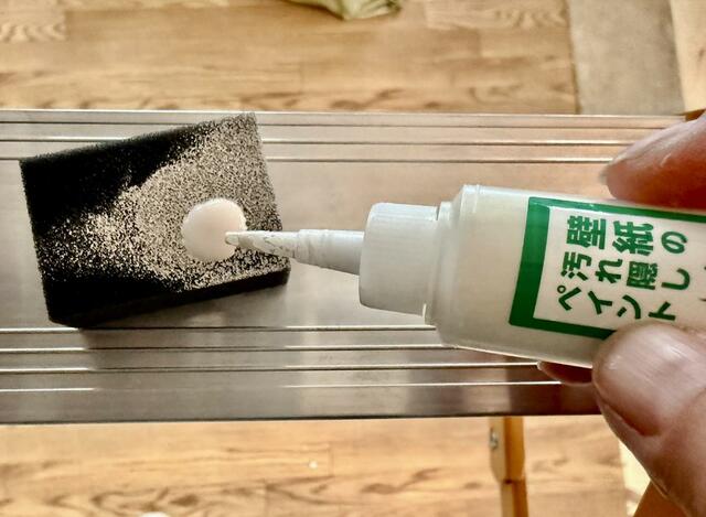 ふんわりと汚れをぼかしながらムラなく塗れます。一旦塗り終わったら乾かして、2度塗り3度塗りするのが上手に仕上げるポイントです。