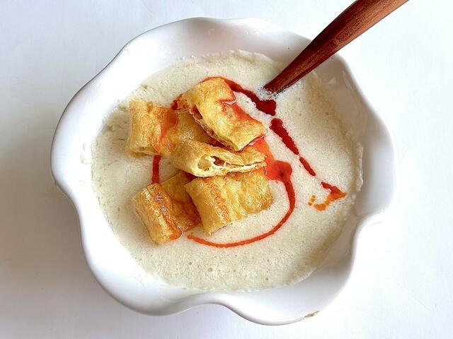 自家製の豆乳で、鹹豆漿(シェントウジャン)をつくってみました。