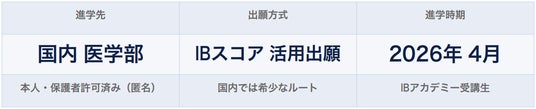 IB(国際バカロレア)スコアによる国内医学部出願という希少ルートで、2026年4月に進学が実現